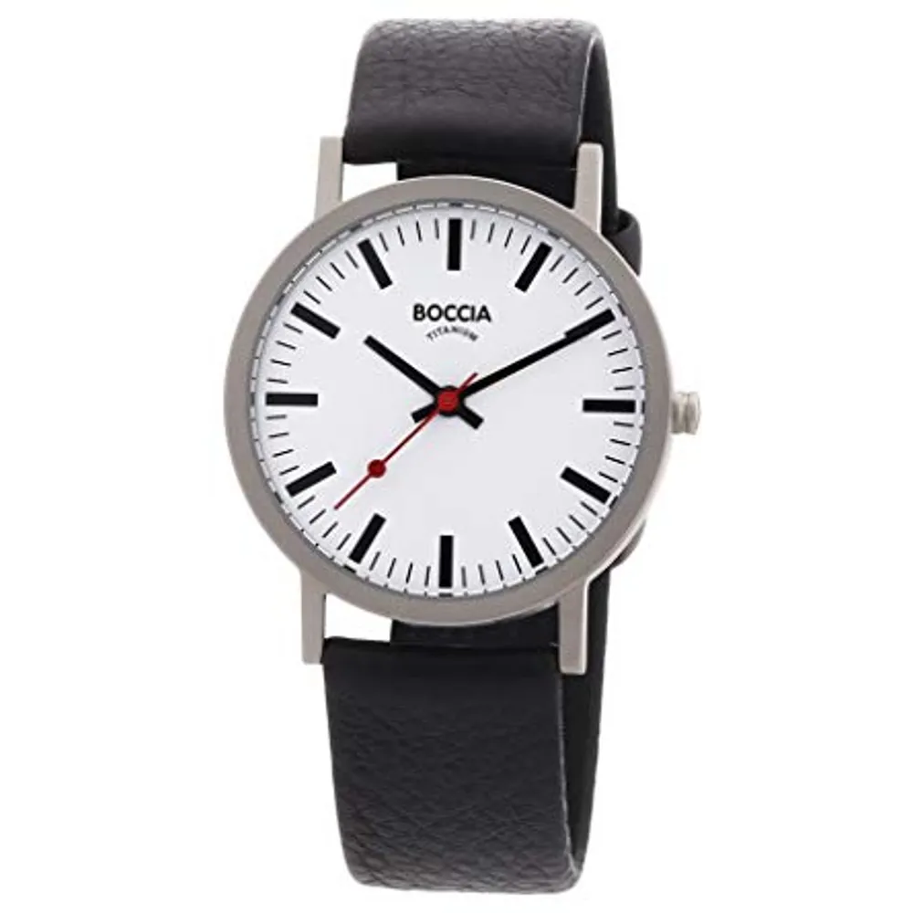 Boccia Armbanduhr Titan Mineralglas Lederband schwarz