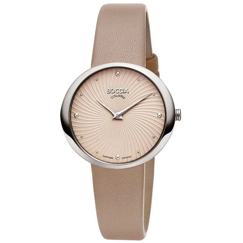 Boccia Damenuhr Titan Saphirglas mit sandfarbenem Lederarmband 3364-02