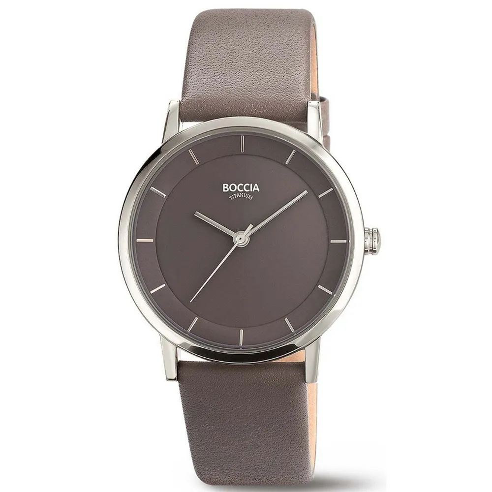 Boccia Damenuhr Titan mit Lederband grau und Zifferblatt grau 3355-02