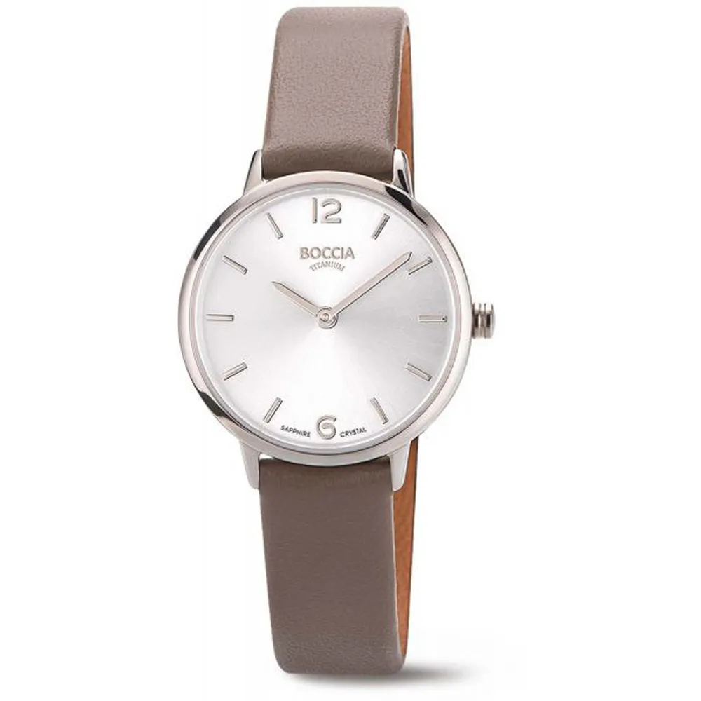 Boccia Damenuhr Titan mit graubraunem Lederband Saphirglas