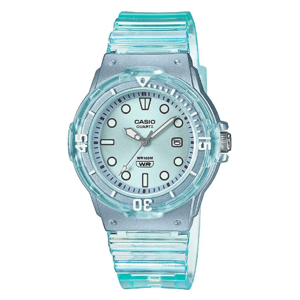 Casio Collection Damenuhr rund hellblau mit durchsichtigem Armband LRW-200HS-2EVEF