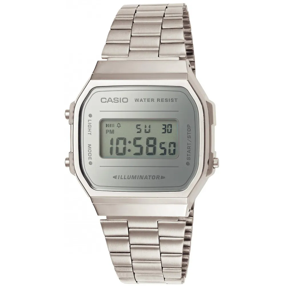 Casio Digitaluhr silberfarben mit spiegelnder Verblendung A168WEM-7EF