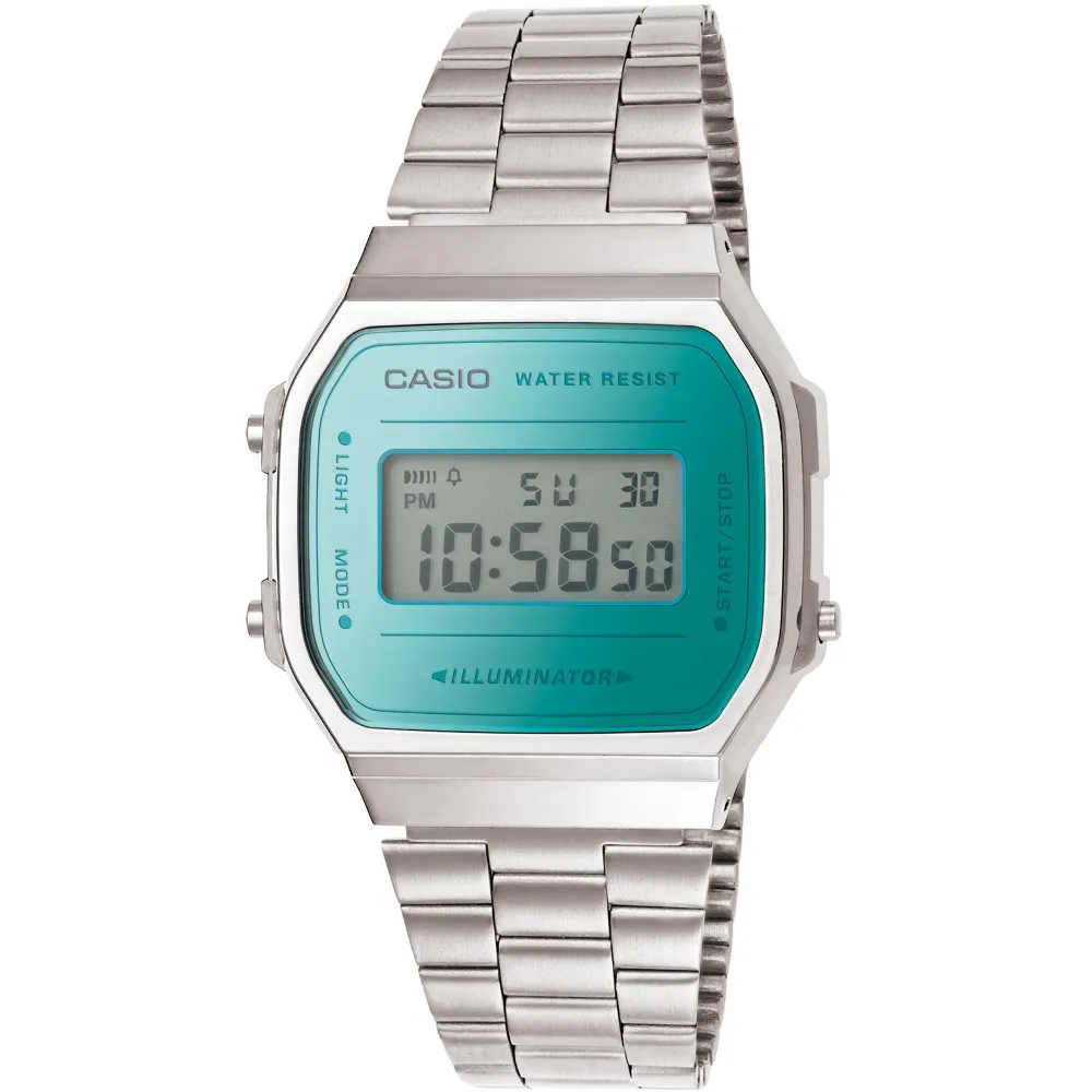 Casio Digitaluhr silbern mit türkisfarbener Verblendung Retro