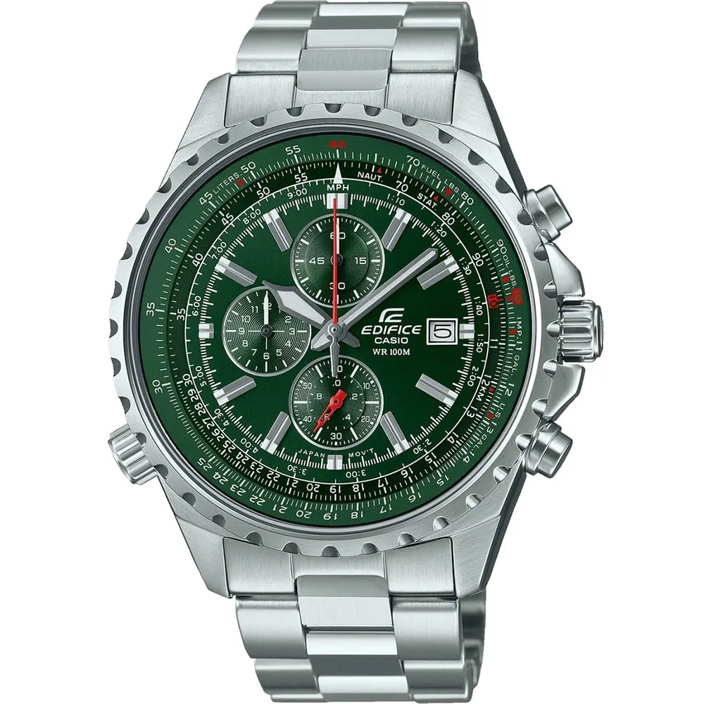Casio Edifice Herrenuhr Chronograph Edelstahl silberfarben grün