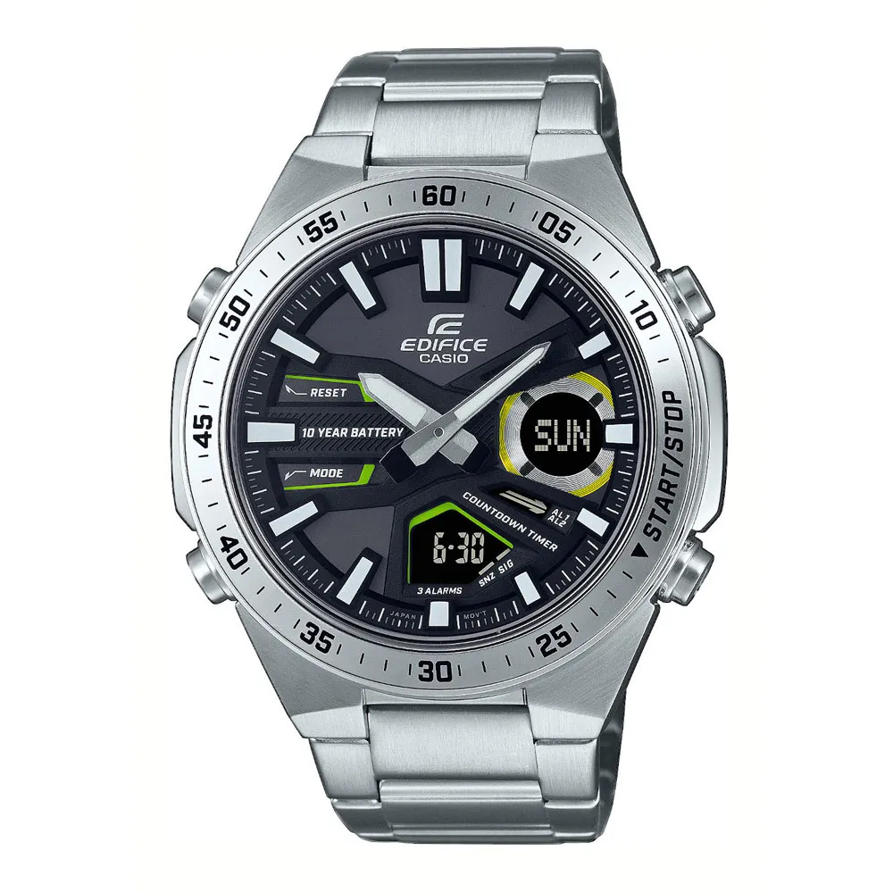 Casio Edifice Herrenuhr silberfarben schwarz grün analog digital EFV-C110D-1A3VEF