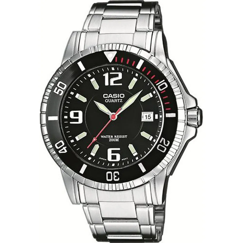 Casio Herrenuhr schwarz rund mit Edelstahlband MTD-1053D-1AVES