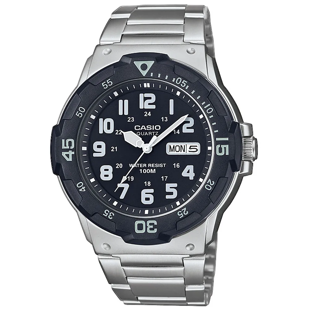Casio Herrenuhr silberfarben schwarz mit Edelstahlband MRW-200HD-1BVEF