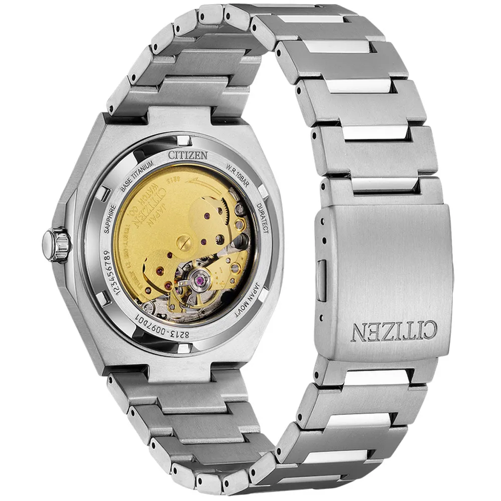 Citizen Automatik Herrenuhr Titan silberfarben mit grünen Zifferblatt NJ0180-80X