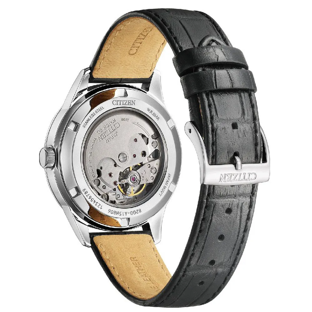 Citizen Automatik Herrenuhr silberfarben mit schwarzem Zifferblatt - Automatikuhr mit Werk Kaliber 8200-Q21