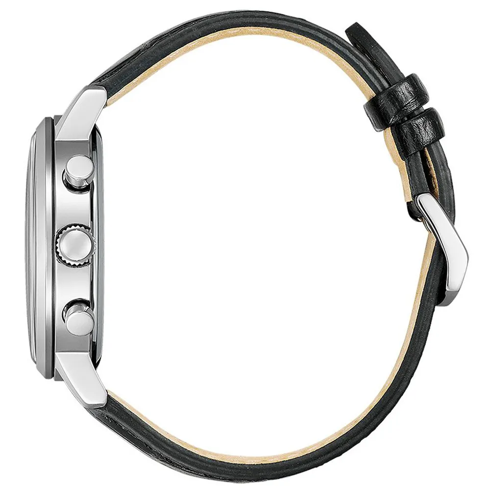 Citizen Eco Drive Herrenuhr Solar Chrono Edelstahl mit schwarzem Lederband