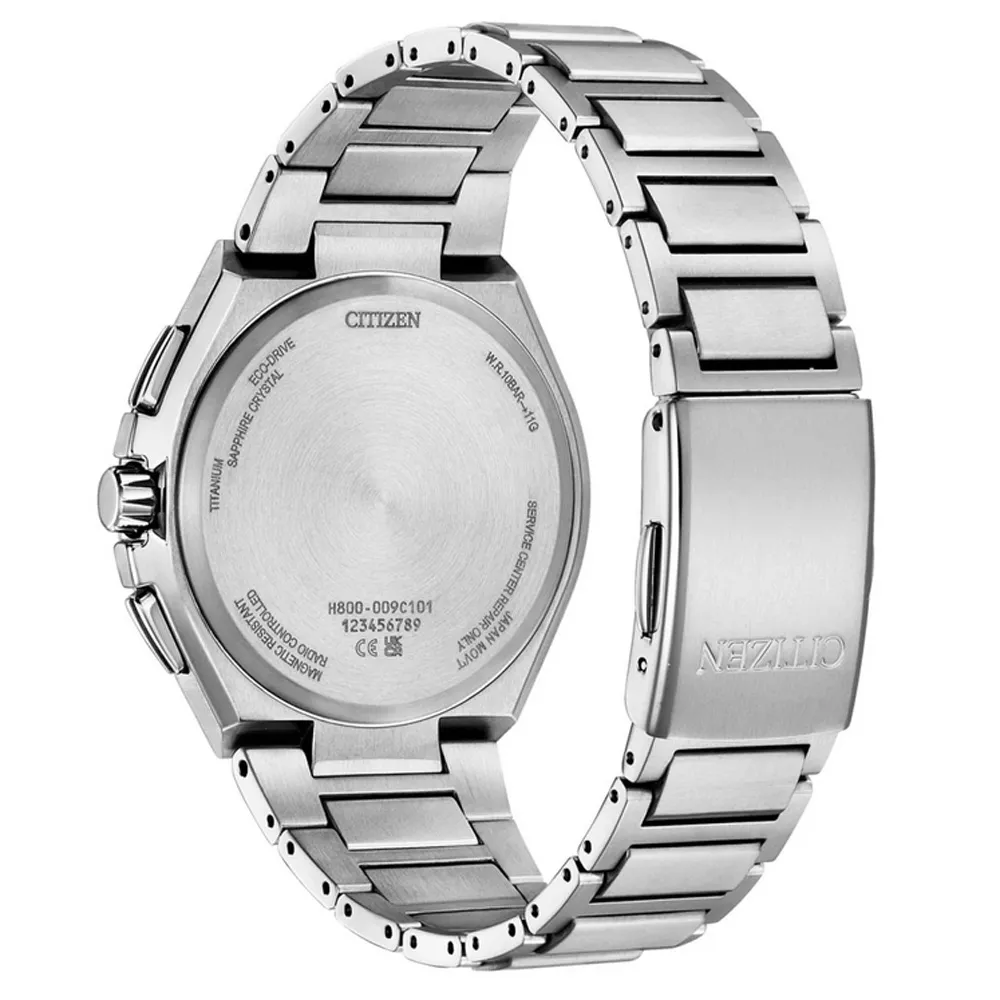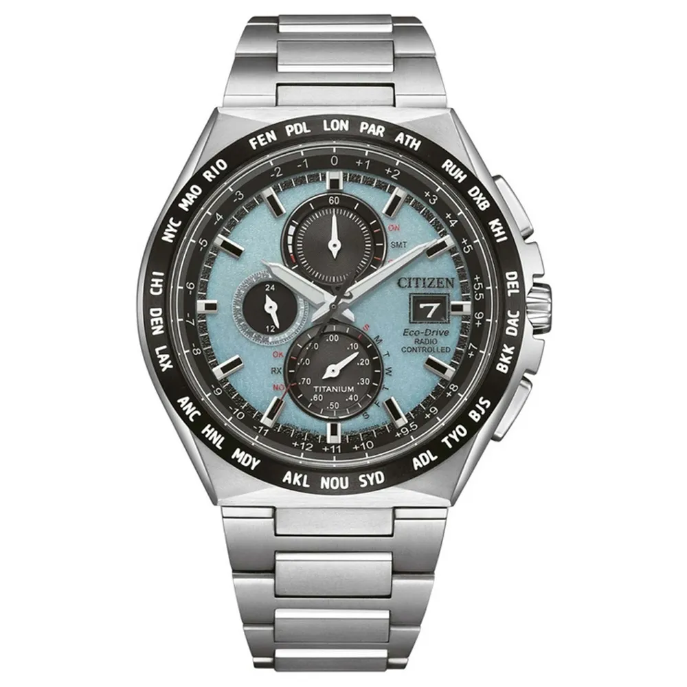 Der Citizen Eco Drive Solar Funk Chronograph Titan AT8238-84M begeistert durch modernste Uhren-Technologie im sportlich-elegantem Design. Mit seinem silberfarbenen Gehäuse und dem hellblauen Zifferblatt mit schwarzen Totalisatoren ist er nicht nur ein präziser Funk-Zeitmesser rund um den Globus, sondern auch ein stilvolles Accessoire für jeden Anlass.