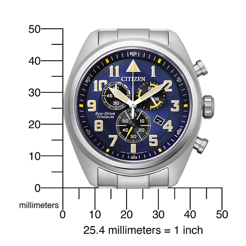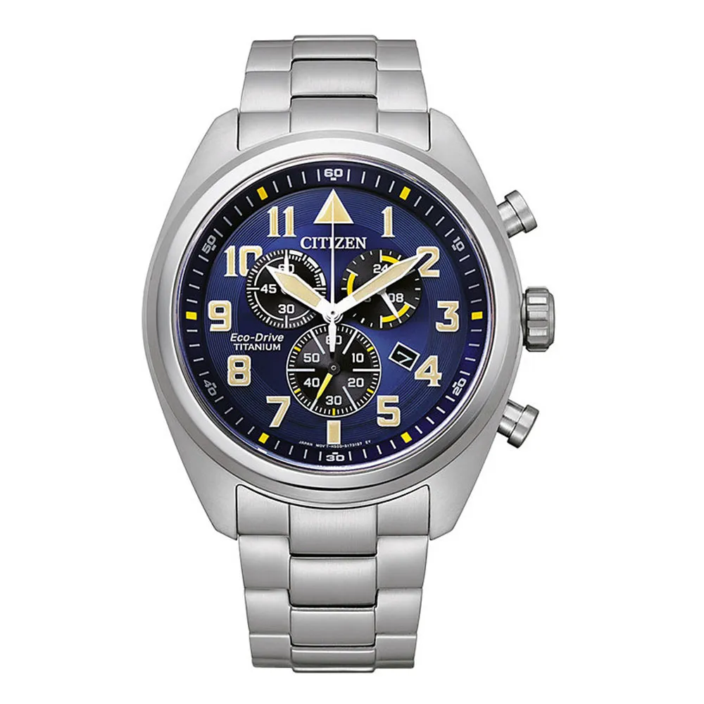 Citizen Herrenuhr Chronograph Eco Drive Solar Titan silberfarben blau AT2480-81L