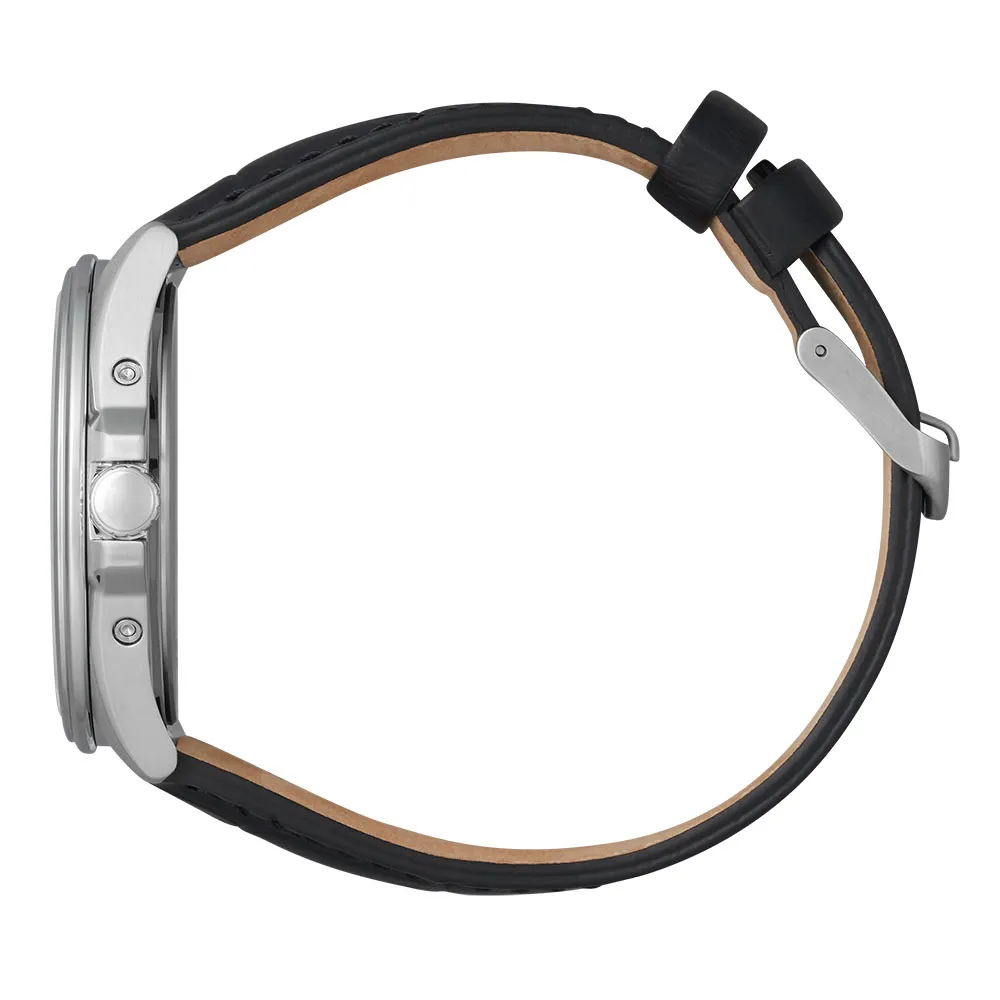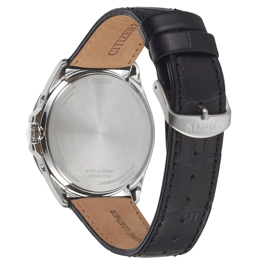 Citizen Herrenuhr Funk Solar silberfarben mit schwarzem Lederband
