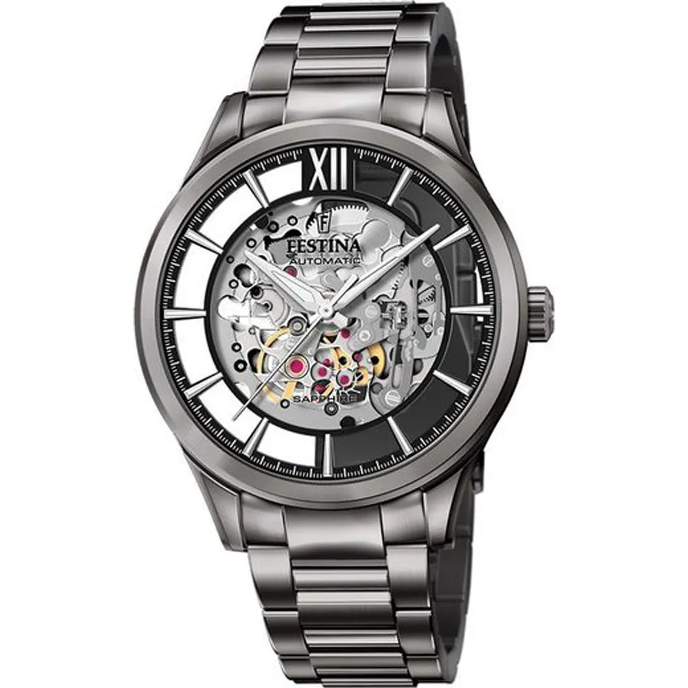 Festina Herrenuhr Automatik Skeleton grau Edelstahl