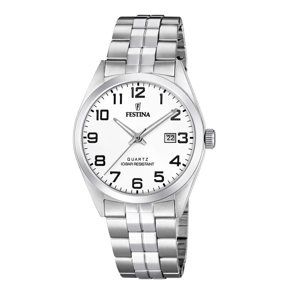 Festina Herrenuhr Klassik weiss mit Edelstahlgliederband F20437/1