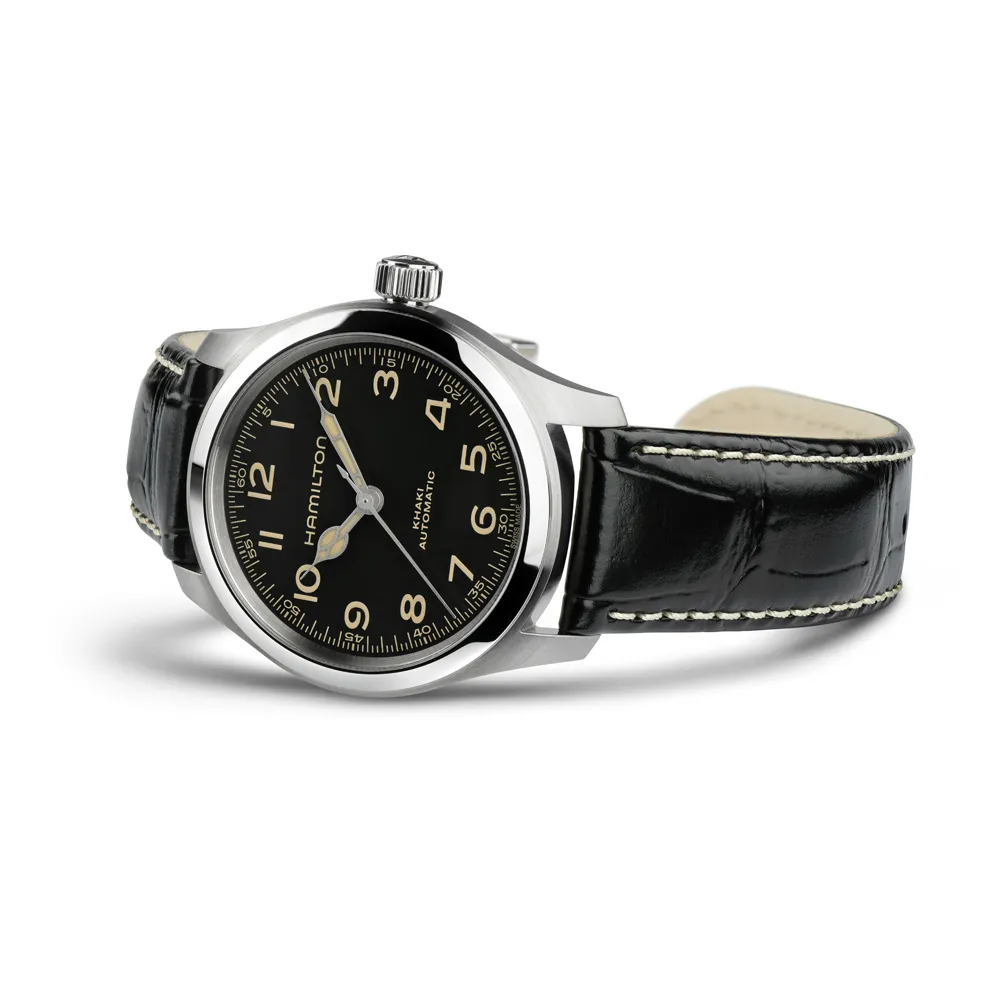 HAMILTON Herrenuhr Khaki Field Murph Automatik mit schwarzem Lederband