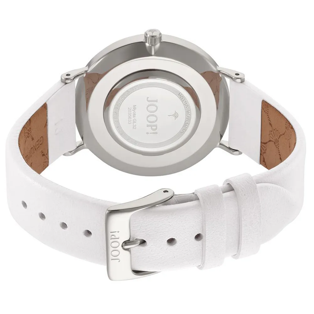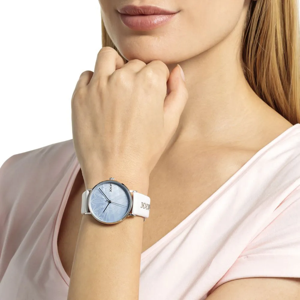 JOOP! Damenuhr Edelstahl silberfarben mit weißem Lederband hellblau 2035633