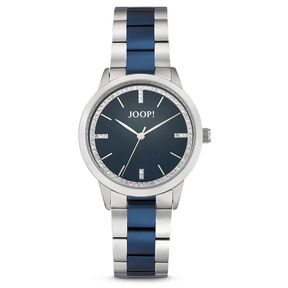 JOOP! Damenuhr Edelstahl teilweise blau mit Gliederband und Zirkonia 2035050