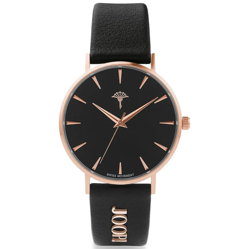 JOOP! Damenuhr roségoldfarben mit schwarzem Lederband