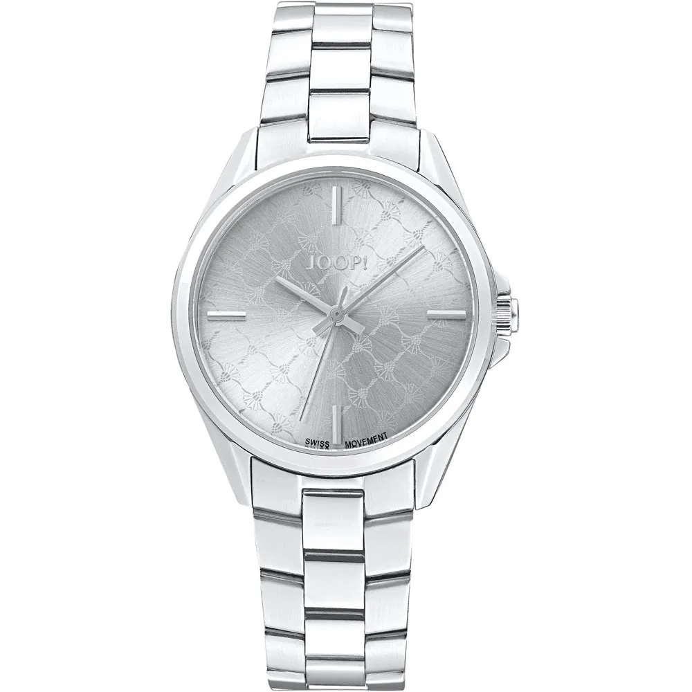 JOOP! Damenuhr silberfarben mit Kornblumenmuster im Zifferblatt