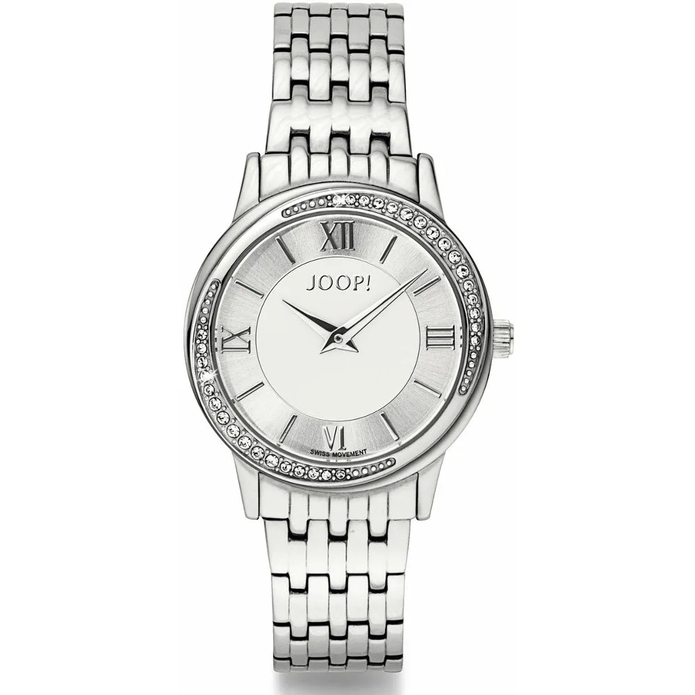 JOOP! Damenuhr silberfarben mit Metallband und Zirkonia- silberfarbenes Edelstahlgehäuse