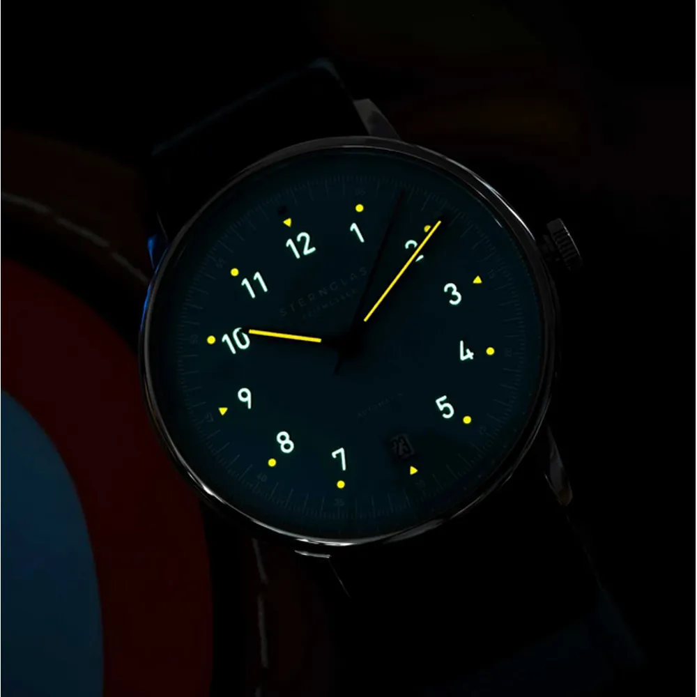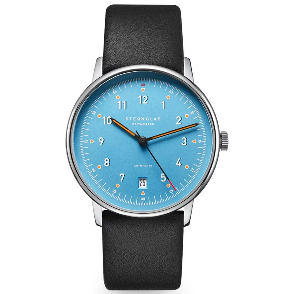 STERNGLAS Automatikuhr LUMATIK hellblau Lederband schwarz S02-LM17-PR07
