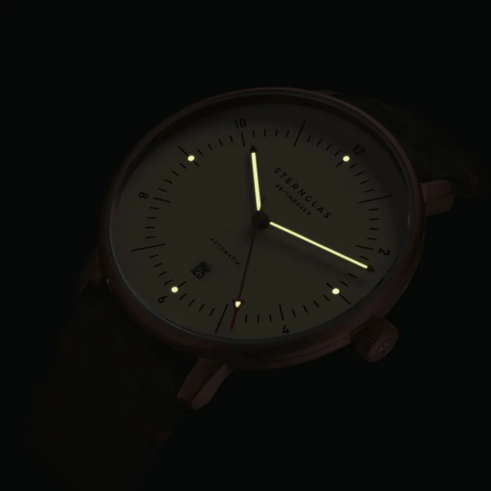 STERNGLAS Naos XL Automatikuhr alabaster bronze Vintage Lederband mocca