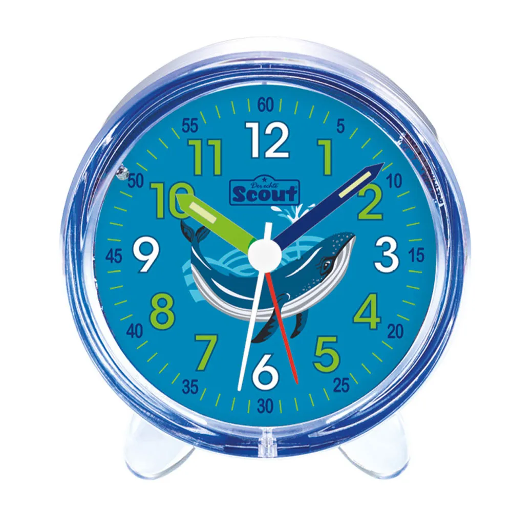 toller Wecker mit Wal Motiv aus der Schulranzen Serie Deep SeaLED Zifferblattbeleuchtunggrün weisse Stundenziffernruhiges UhrwerkAlarm (Beep Signal)AlarmwiederholungstasteGehäusemaße ca. 9,5 x 8,5 x 4,5 cmBatterien sind nicht im Lieferumfang enthaltenScout Kinderwecker Favorit blau grün Wal 280001057