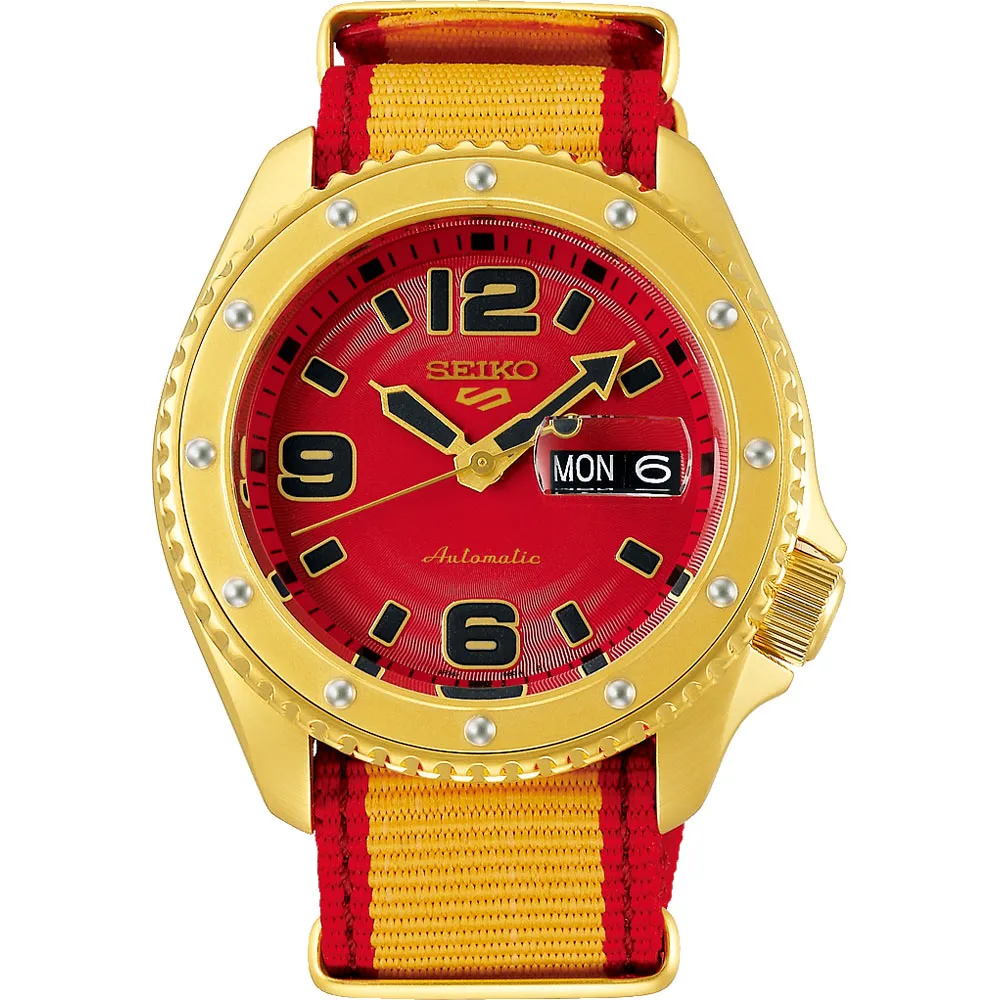 Die Seiko 5 Sports Automatikuhr Limited Streetfighter V zu Zangief SRPF24K1 begeistert mit ihrem kraftvollen Design und der Hommage an den legendären Charakter. Ihr robustes, vergoldetes Gehäuse, die auffällig markante Ziffernblattgestaltung und die präzise Automatik machen sie zum perfekten Accessoire für Fans und durch die Limitierung besonders für Sammler und Uhrenliebhaber.- limitierte Edition auf 9999 Stück weltweit