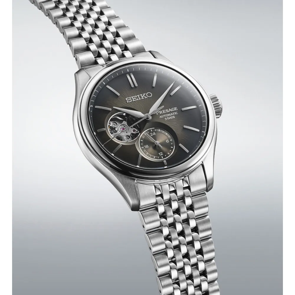 Seiko Presage Automatikuhr Sumi-iro silberfarben schwarz Open Heart SPB471J1