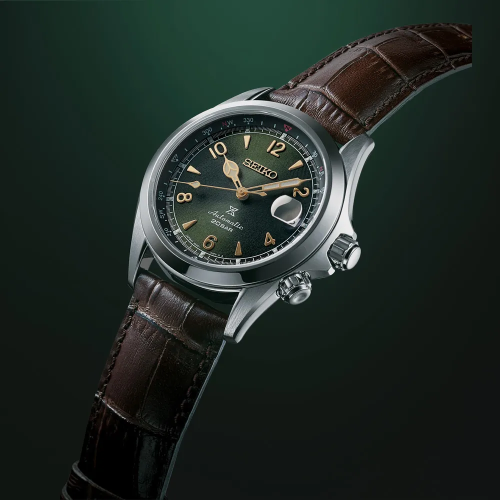 Seiko Prospex Automatik Herrenuhr Alpinist grün mit braunem Lederband SPB121J1