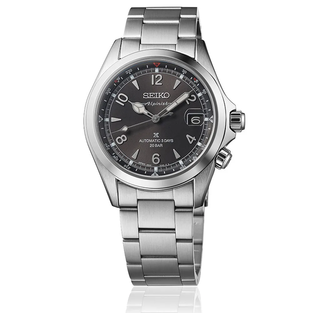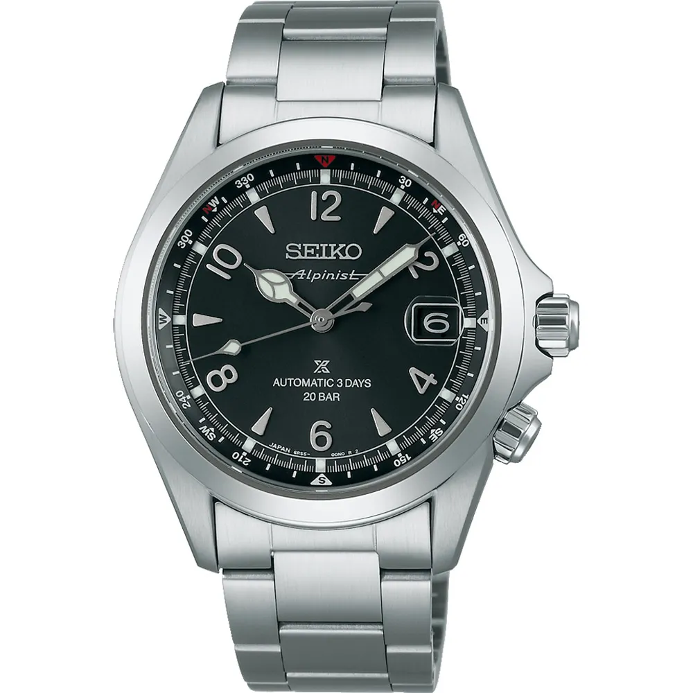 Seiko Prospex Land Alpinist Automatikuhr silberfarben schwarz Edelstahlband SPB505J1