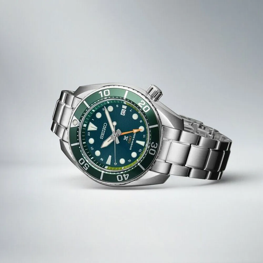 Seiko Prospex SUMO Solar GMT Herrenuhr grün mit Edelstahlband SFK003J1