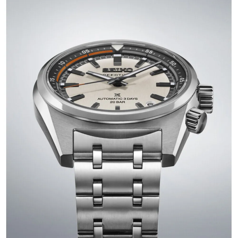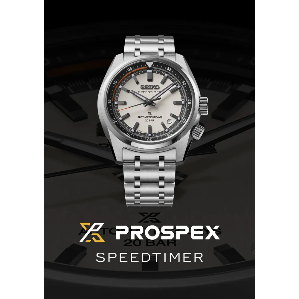 Die Seiko Prospex Automatik 3 Zeiger Speedtimer Armbanduhr bietet sportliche Funktionalität und verknüpft gleichzeitig traditionelle Merkmale. Vorlage dafür gibt der legendäre Seiko Speedtimer aus den siebziger Jahren. Die Countdown Funktion über die drehbare innenliegende Rehaut und die auffällige dreieckige Markierung bei 12 Uhr bringen den Rennsport direkt ans Handgelenk. - Seiko Prospex Automatikuhr