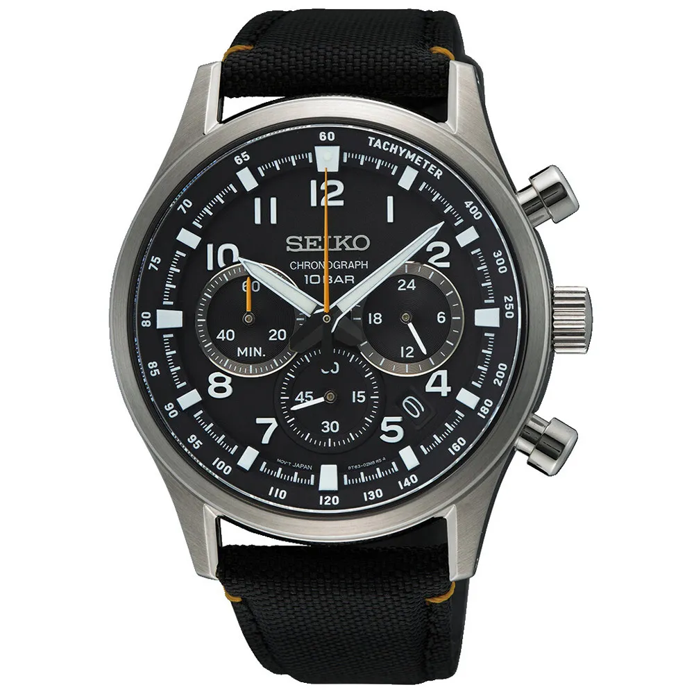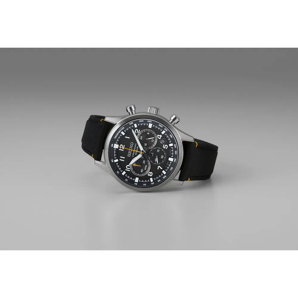 Seiko Sport Chrono silberfarben mit Saphirglas und schwarzen Textilband SSB449P1