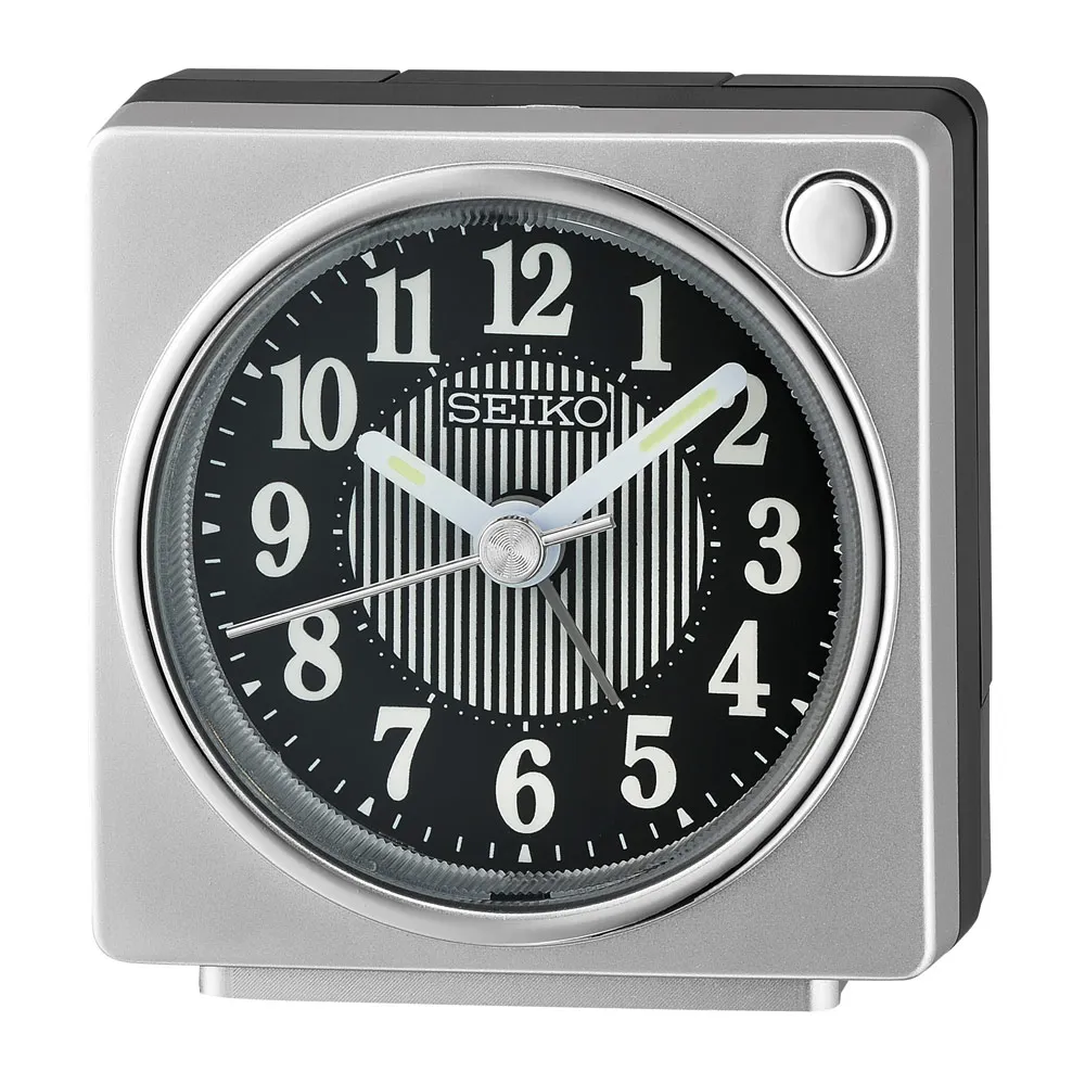 Seiko Wecker silberfarben schwarz Quarz mit lumineszierenden Zeigern QHE197S