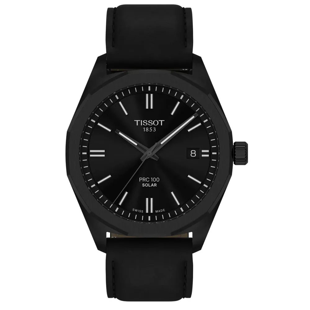 Tissot Herrenuhr PRC 100 Solar Quarz schwarz Lederband 39 mm - Schweizer Armbanduhr mit Solar Quarzwerk