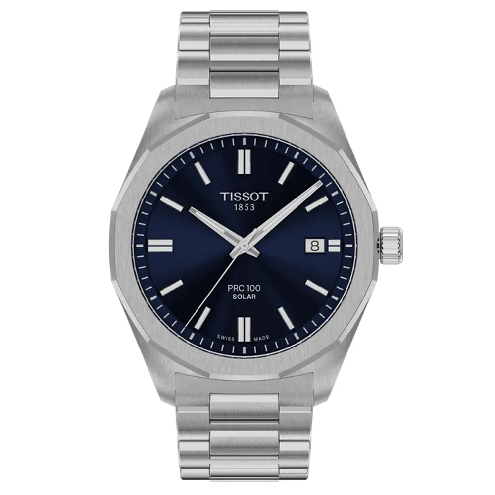 Tissot Herrenuhr PRC 100 Solar Quarz silberfarben blau 39 mm - Schweizer Armbanduhr mit Solar Quarzwerk