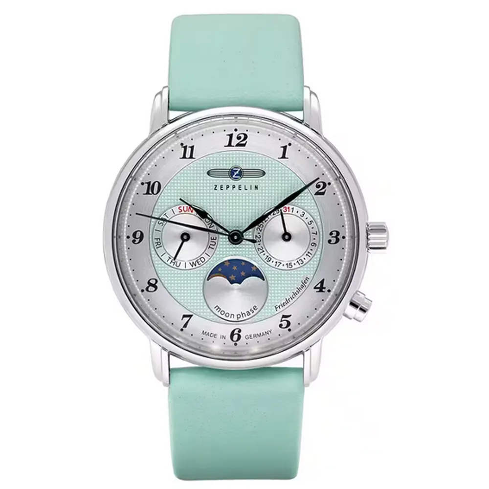 Zeppelin Damenuhr Friedrichshafen mit mintgrünem Band und silberfarbenem Band